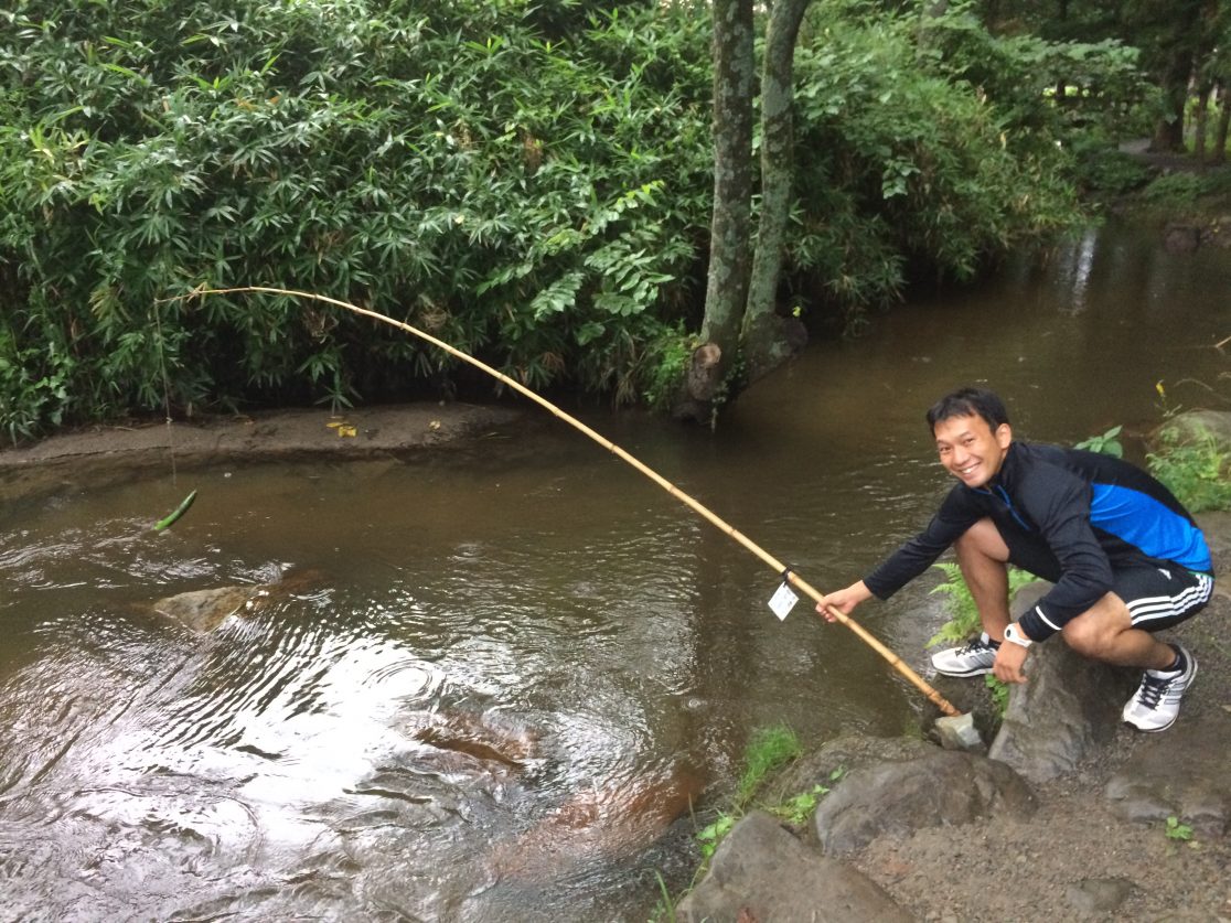 観光名所カッパ淵では釣り竿の先にキュウリを付けて、なんと…カッパ釣り体験ができます。