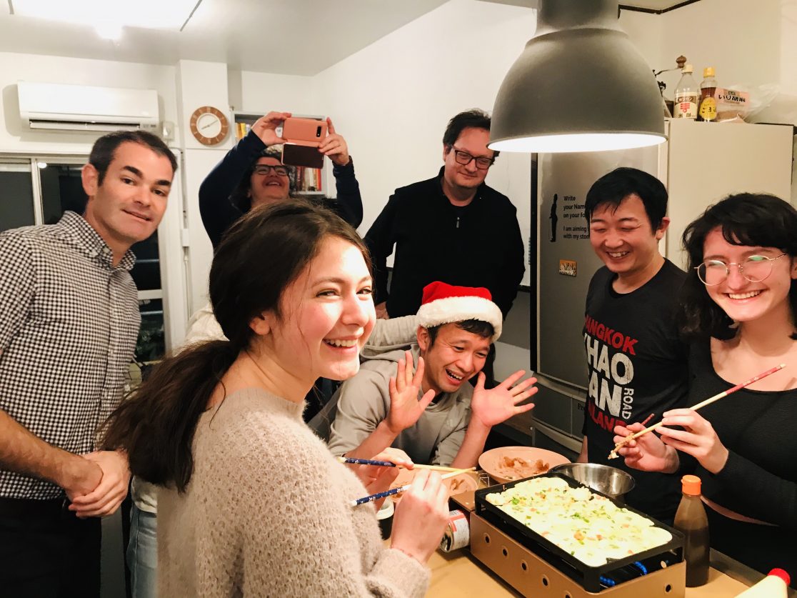 夜はゲストハウスChapter Two Tokyoでたこやきクリスマス会♪