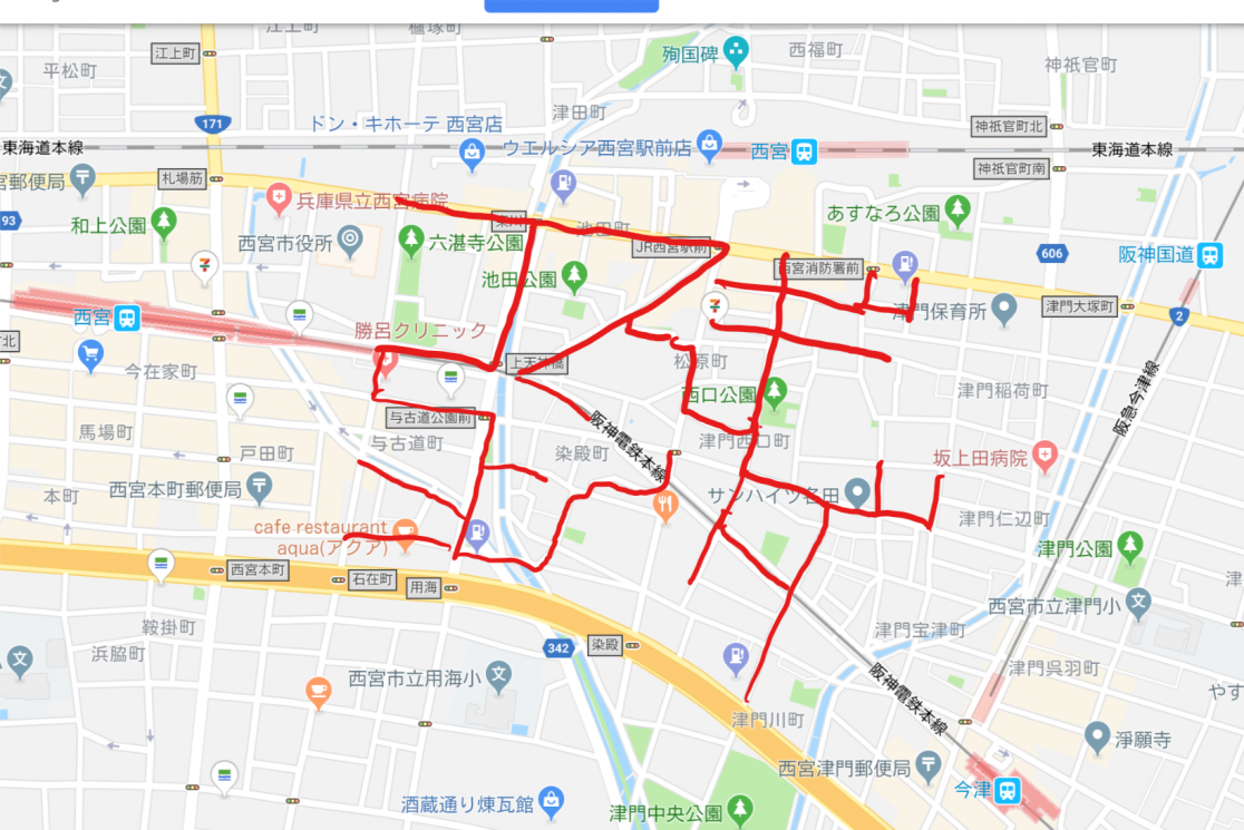 メールを見たのち、早速番組内で走るGPS案を作成するために西宮市を走りに。