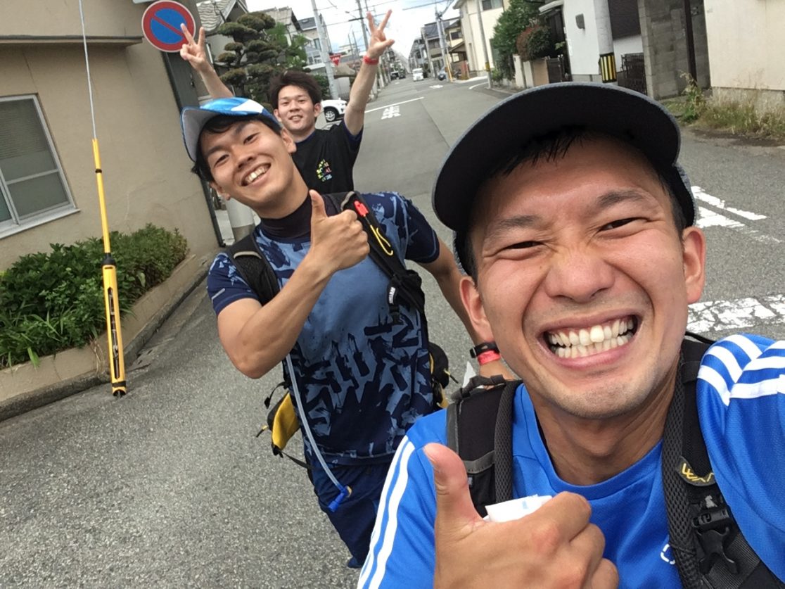 クライマックスは明石駅前の名物市場、『魚の棚(うおんたな)』を3人で走って描く!