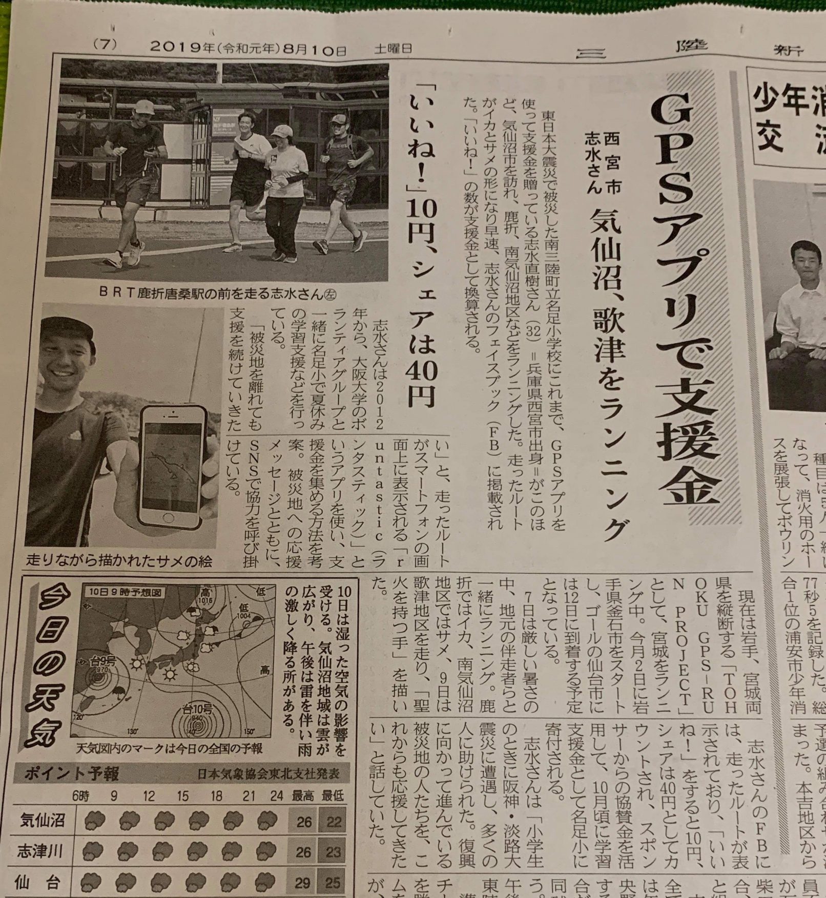 気仙沼と三陸町の地元紙、三陸新報に活動に関する取材を受け、記事にして頂きました!