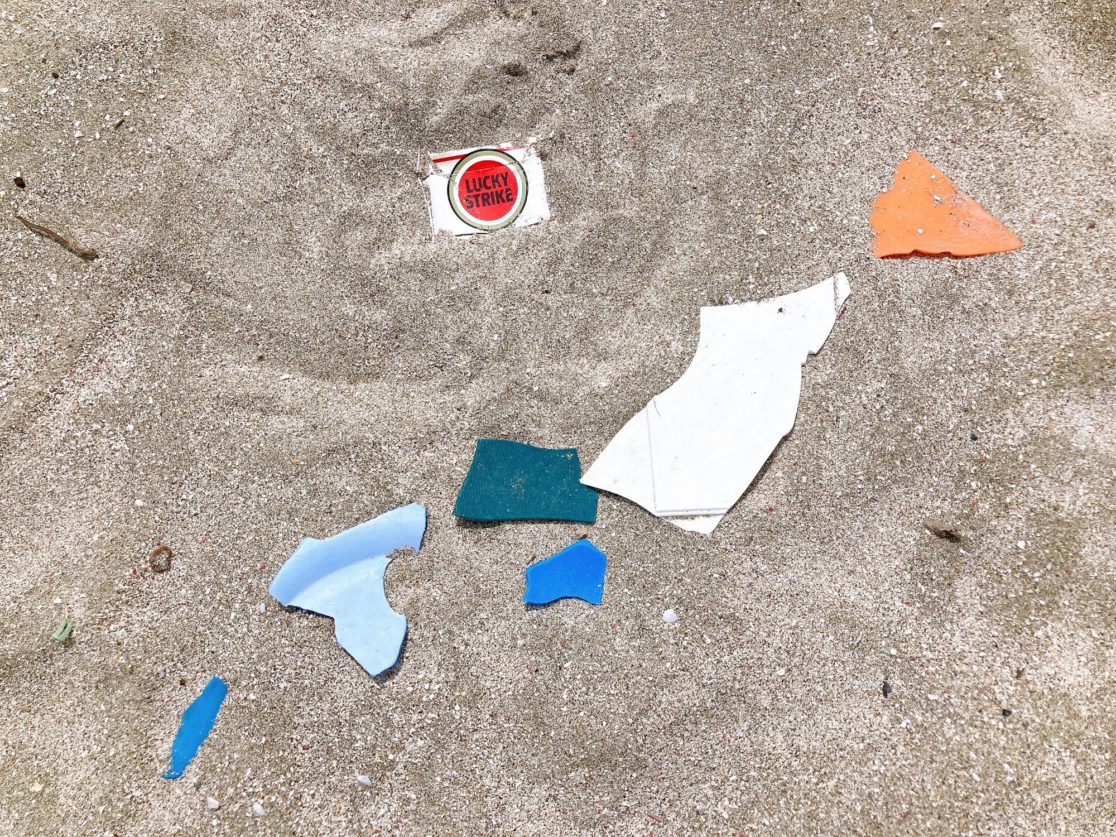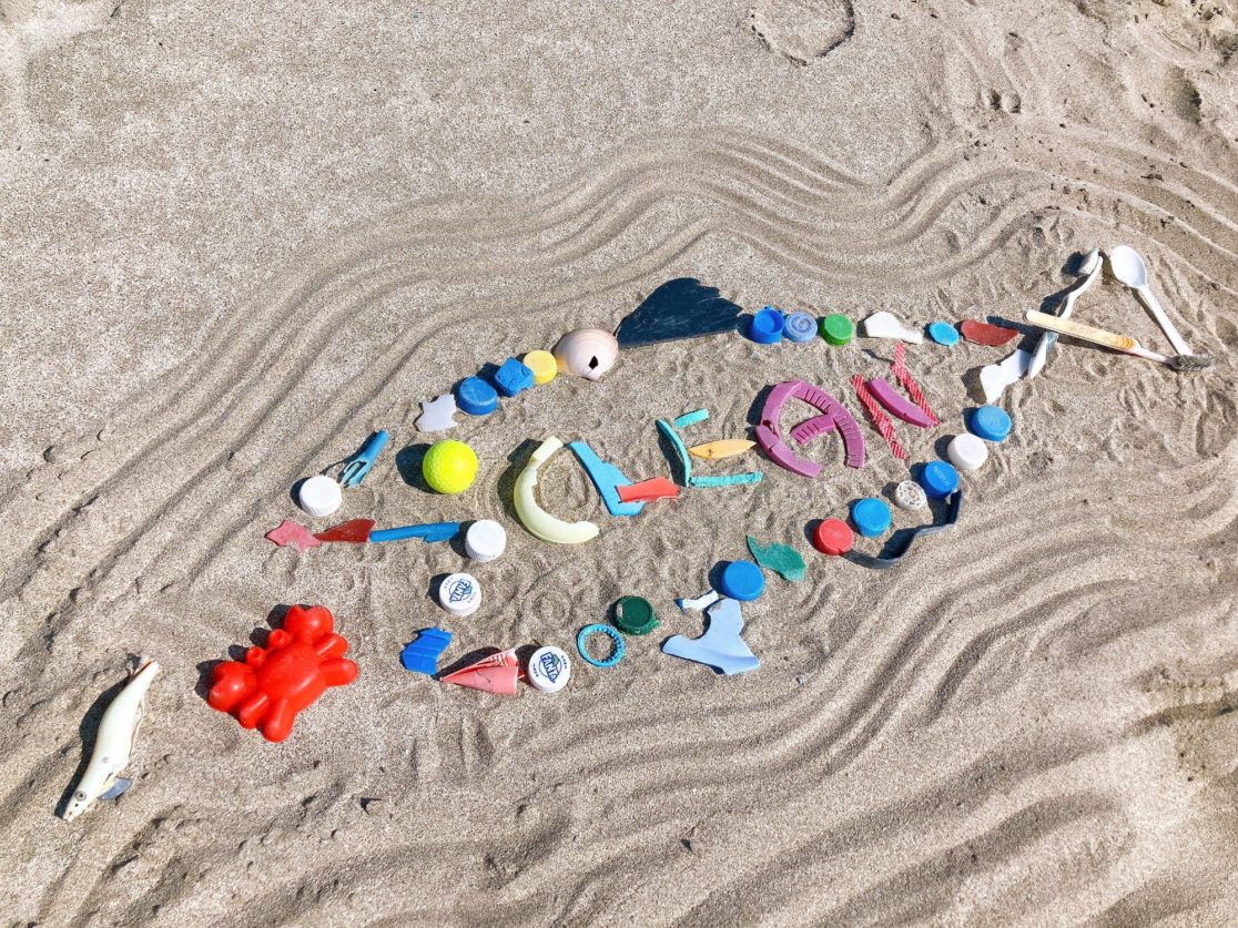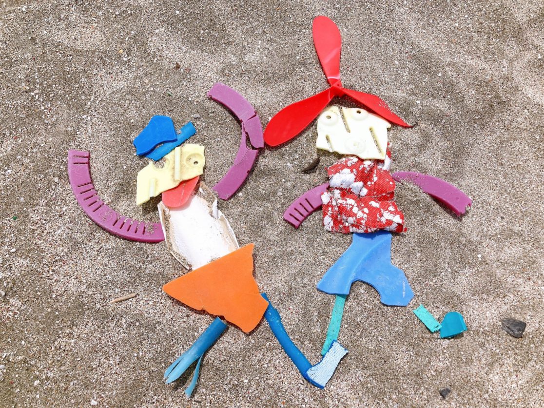 砂浜でゴミ拾いをした後、回収ゴミでアート作りやGPSビーチアートを実施!